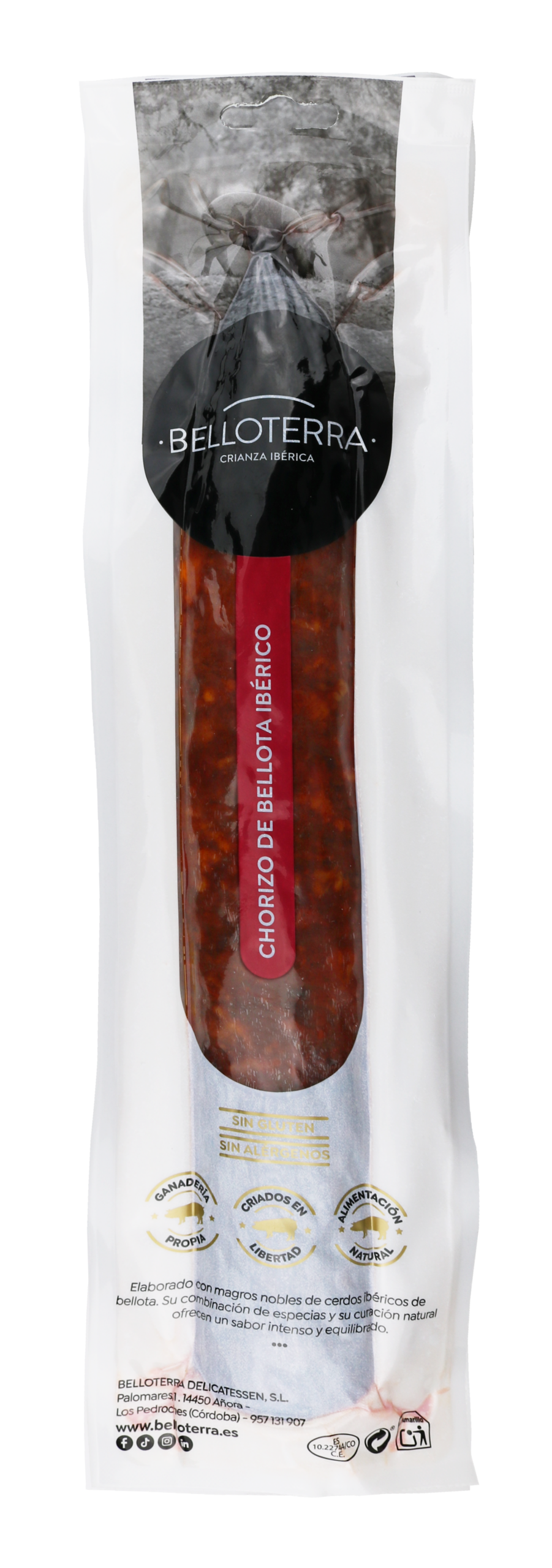 Il chorizo iberico di bellota cular è preparato con carne selezionata di maiali iberici allevati allo stato brado e alimentati con ghiande. Il suo condimento tradizionale e la lenta stagionatura esaltano un sapore intenso, equilibrato e ricco di sfumature.